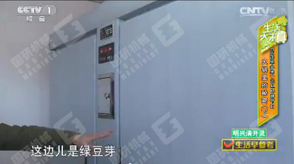 2015年1月3日早8:33,中央電視臺(tái)一套《生活早參考》( 20150103 元旦特別節(jié)目火鍋里的秘密) 播出了市場上毒豆芽的生產(chǎn)和危害,并重點(diǎn)播放了位于北京朝陽區(qū)東壩后街臨77號(hào)的良仕德(北京)餐飲管理有限公司所屬的快餐店使用國研豆芽機(jī)自行生產(chǎn)無公害豆芽的情景,國研牌無公害豆芽機(jī)在該節(jié)目中進(jìn)行了詳細(xì)介紹和推崇。國研牌綠色無公害豆芽機(jī)成為抗擊毒豆芽最佳的無公害豆芽生產(chǎn)設(shè)備,受到食品行業(yè)的廣泛歡迎。