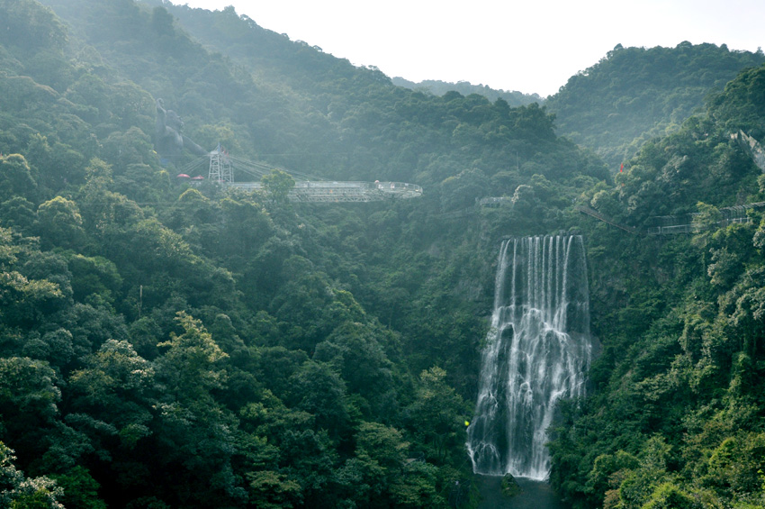 兩小時(shí)的小北江之游,大家都還余味未盡。導(dǎo)游又帶上大家趕往這次團(tuán)建活動(dòng)的重頭戲的目的地:古龍峽的“云天波霸”。今天公司參加團(tuán)建的所有員工都要挑戰(zhàn)目前世界上較寬的高空玻璃橋,玻璃橋像一條通體透明的巨龍連接著峽谷兩岸,橋下懸空超過100米,站在橋上向下看,真是令人心驚膽戰(zhàn),大家相互鼓勵(lì),三三兩兩牽手前行,用相互的關(guān)愛順利通過并成功抵達(dá)世界較大直徑的懸空玻璃平臺(tái)。盡管大家都汗流浹背,但每個(gè)人臉上都洋溢著喜悅。因?yàn)榇藭r(shí)大家都收獲了克服恐懼心理后戰(zhàn)勝困難的勇氣和成功!