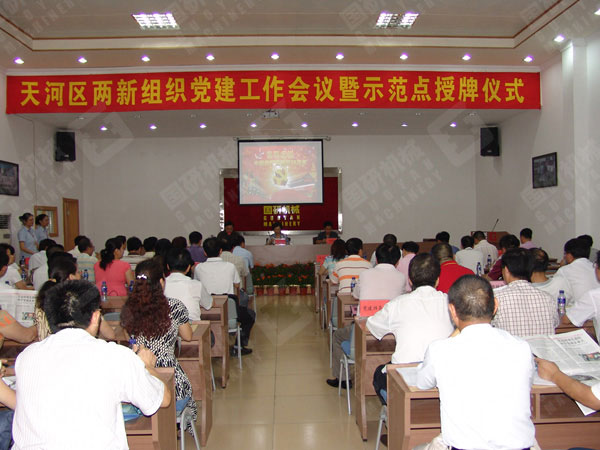 7月2日下午,天河區(qū)“兩新組織”黨建工作現(xiàn)場(chǎng)會(huì)暨黨建工作示范點(diǎn)授牌儀式在廣州市國(guó)研機(jī)械設(shè)備制造有限公司隆重舉行。天河區(qū)委常委、組織部部長(zhǎng)潘文捷、廣州市委組織部組織處處長(zhǎng)邱培藩、天河區(qū)委組織部副部長(zhǎng)陳璋、公司董事長(zhǎng)兼總經(jīng)理王聲位、珠吉街黨工委書(shū)記杜黨勇、辦事處主任周?chē)?guó)棟等出席了會(huì)議。