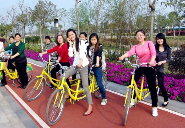 頭頂藍天白云,腳踏茵茵綠草,身邊是碧水長堤,目之所及,綠樹紅花交相輝映。并時有白墻黑瓦、古色古香的亭臺樓閣,鋪上琉璃瓦的尖頂,迂回幽靜的廊中榭間,處處彰顯著嶺南水鄉(xiāng)的韻味。女同事們在陽光下歡呼雀躍,笑聲被三月的春風送得很遠。各色鮮花帶來的驚喜,比賽騎車的刺激,采摘楊桃時的興奮,聚餐給人的溫馨感覺,讓她們感覺到了全身心的放松和快樂。多位女同事不禁感嘆:“和姐妹們聚在一起的感覺實在太棒了!公司真給力呀!”